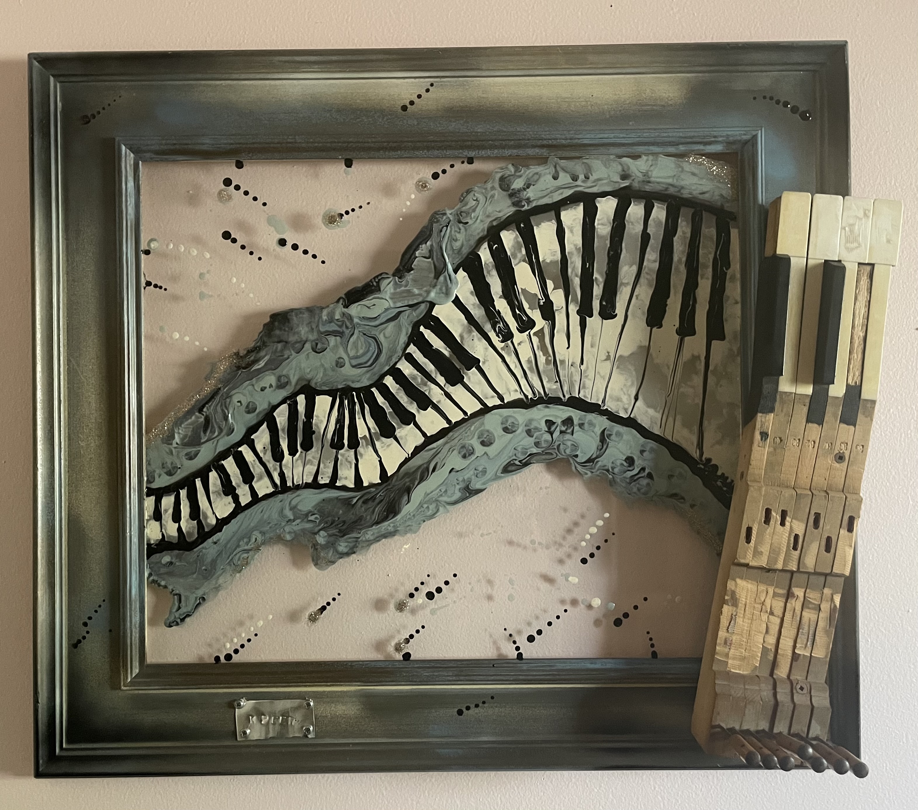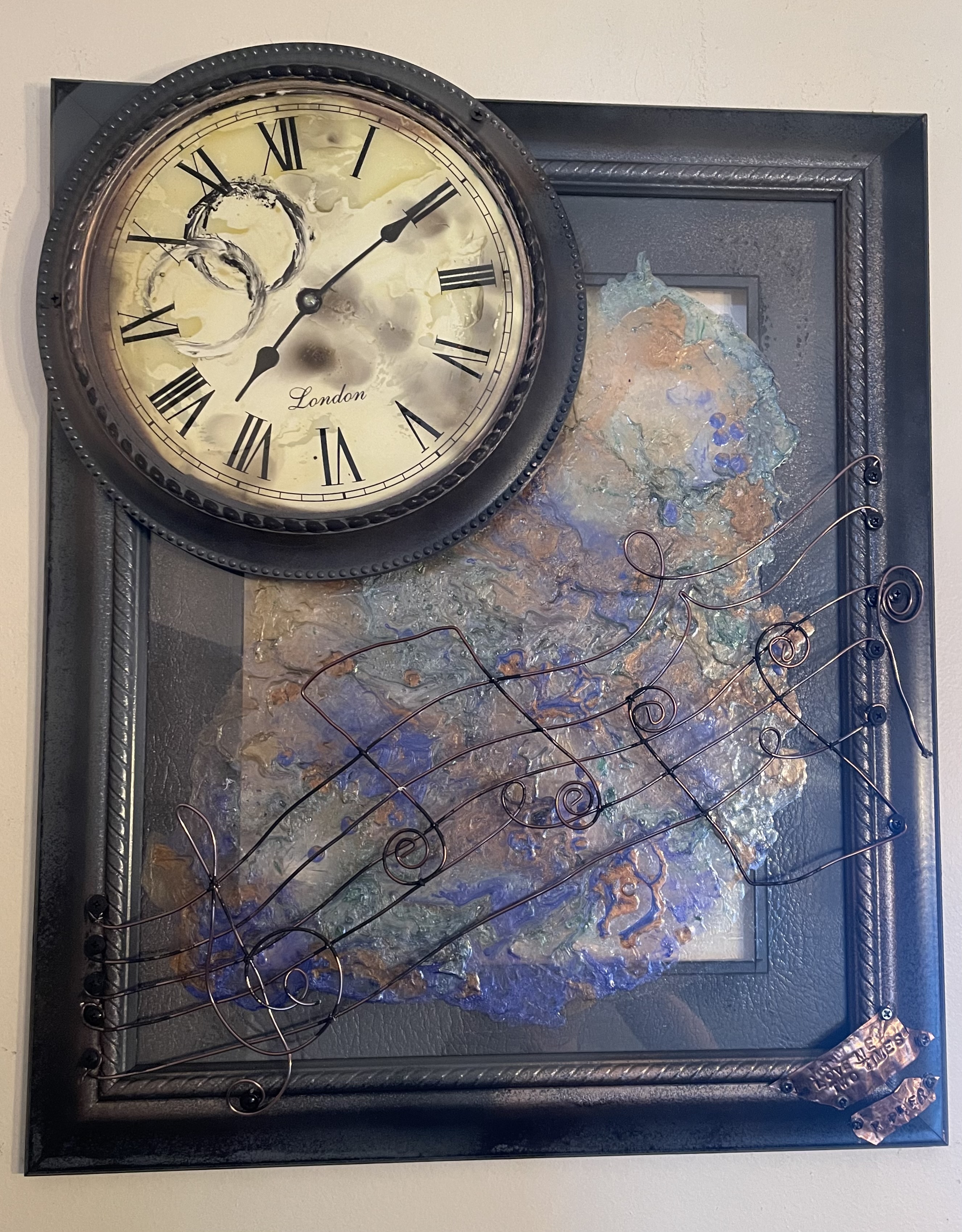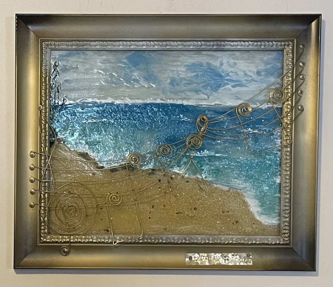 “A whiter shade of pale” Is a beautiful calming 26” x 24”ocean scape that incorporates a few hand bent and tied musical notes of the song and grains of sand to ensure an immersive reaction……..maybe I should call it peaceful ☺️