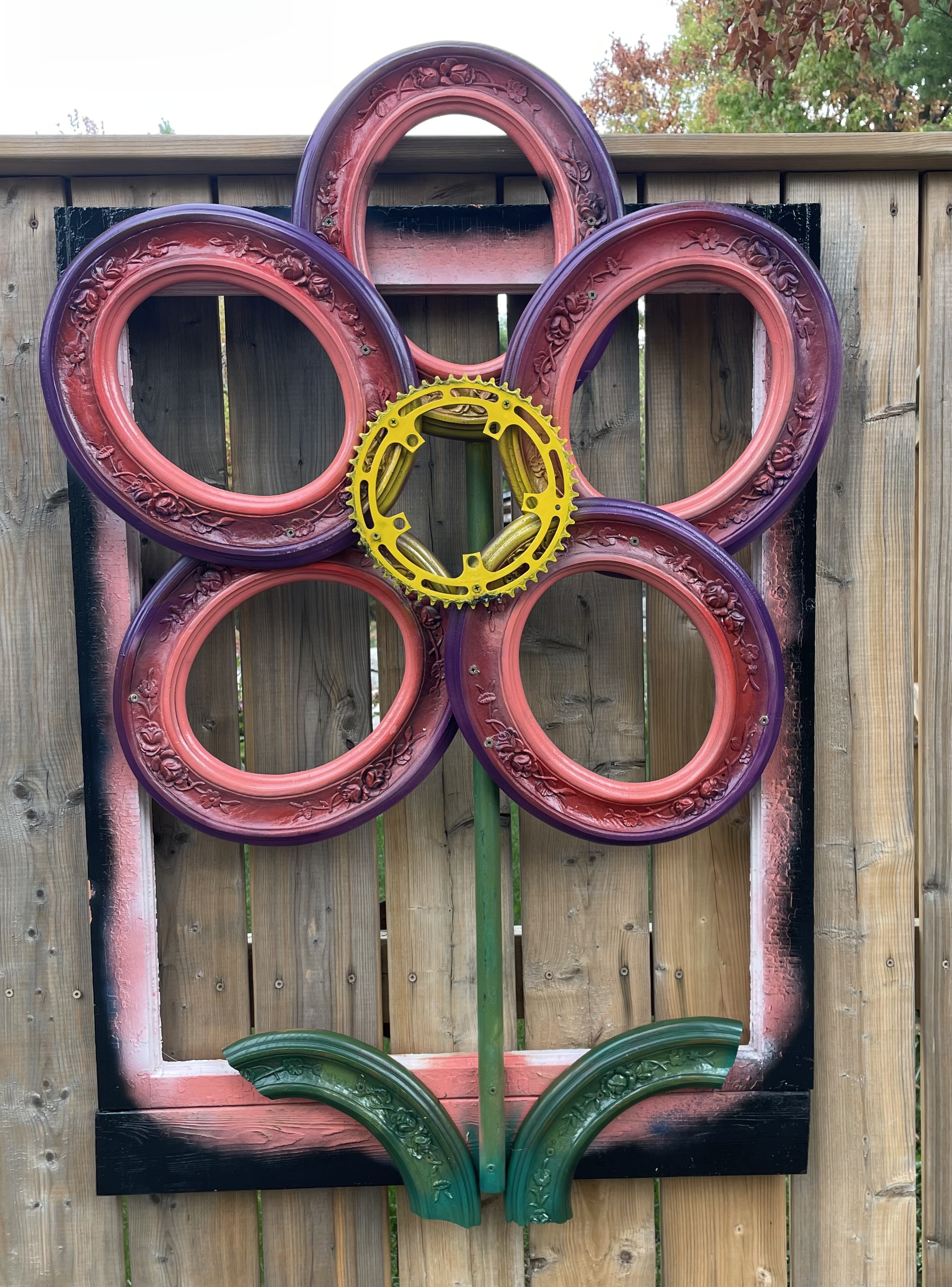This huge 30” x 40” outdoor flower creation is big bold and waiting for a new home.
