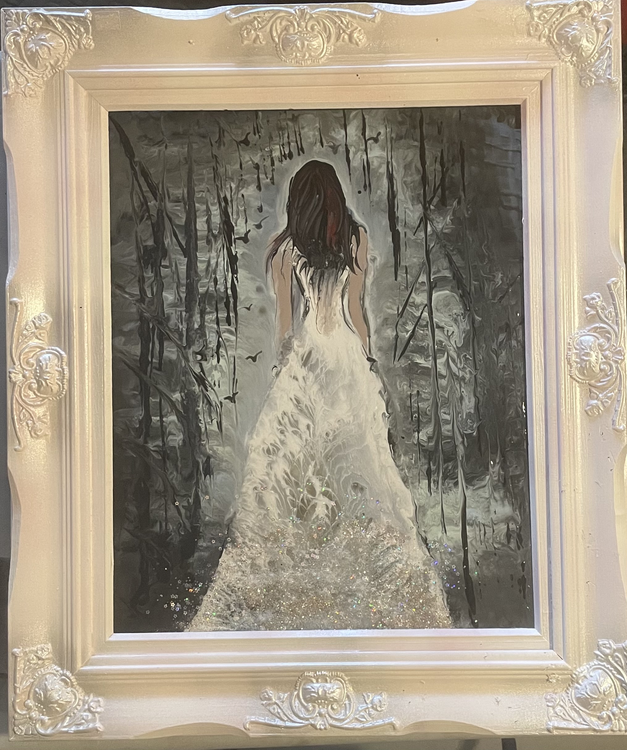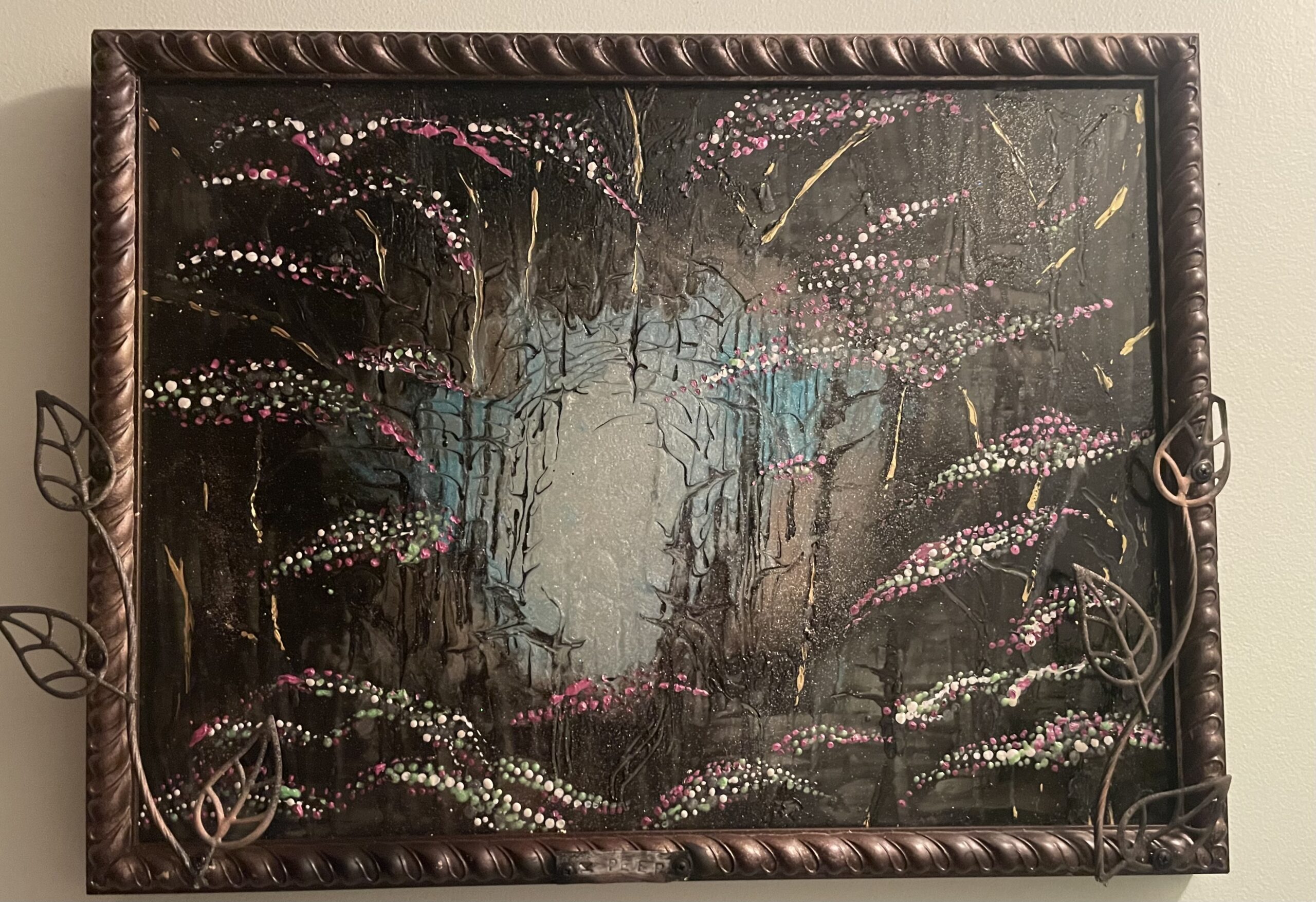 Mysterious or haunting this large 48” x 36” creation is a beautiful statement or conversation piece and is looking a permanent home. I hope you like it as much as I do, INTO THE MYSTIC 🫶