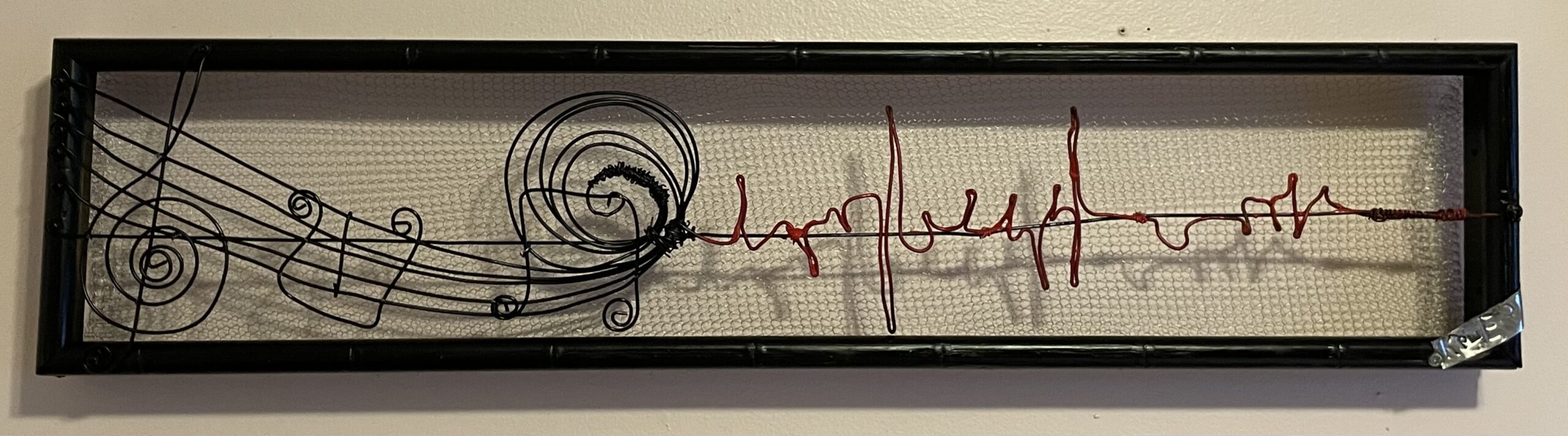 The Delicate wire in this 14” x 16” handmade beautiful music score doesn’t make the the message any less powerful. I will survive is a combination of simple and strong????