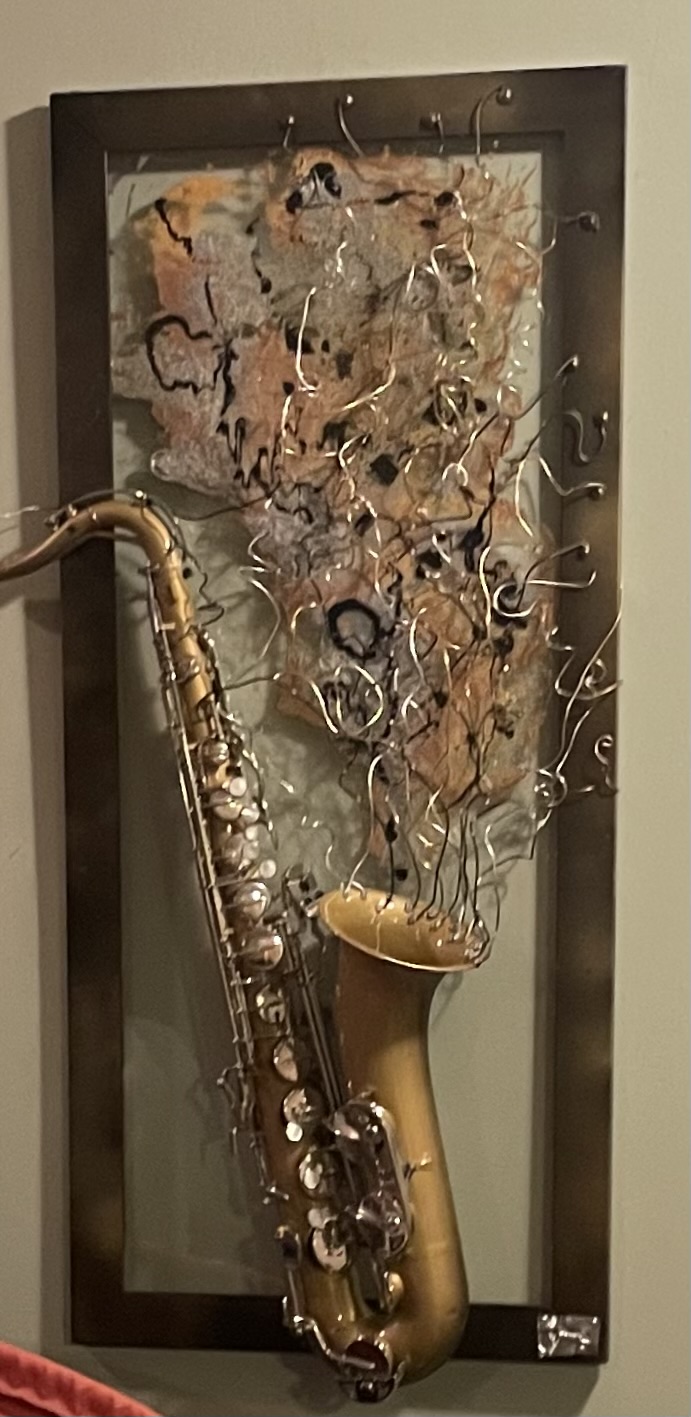 The muted sages and silvers really accent and highlight this beautiful piece and standing 3ft x by 18” wide is a huge tribute to those incredible sax players out there.