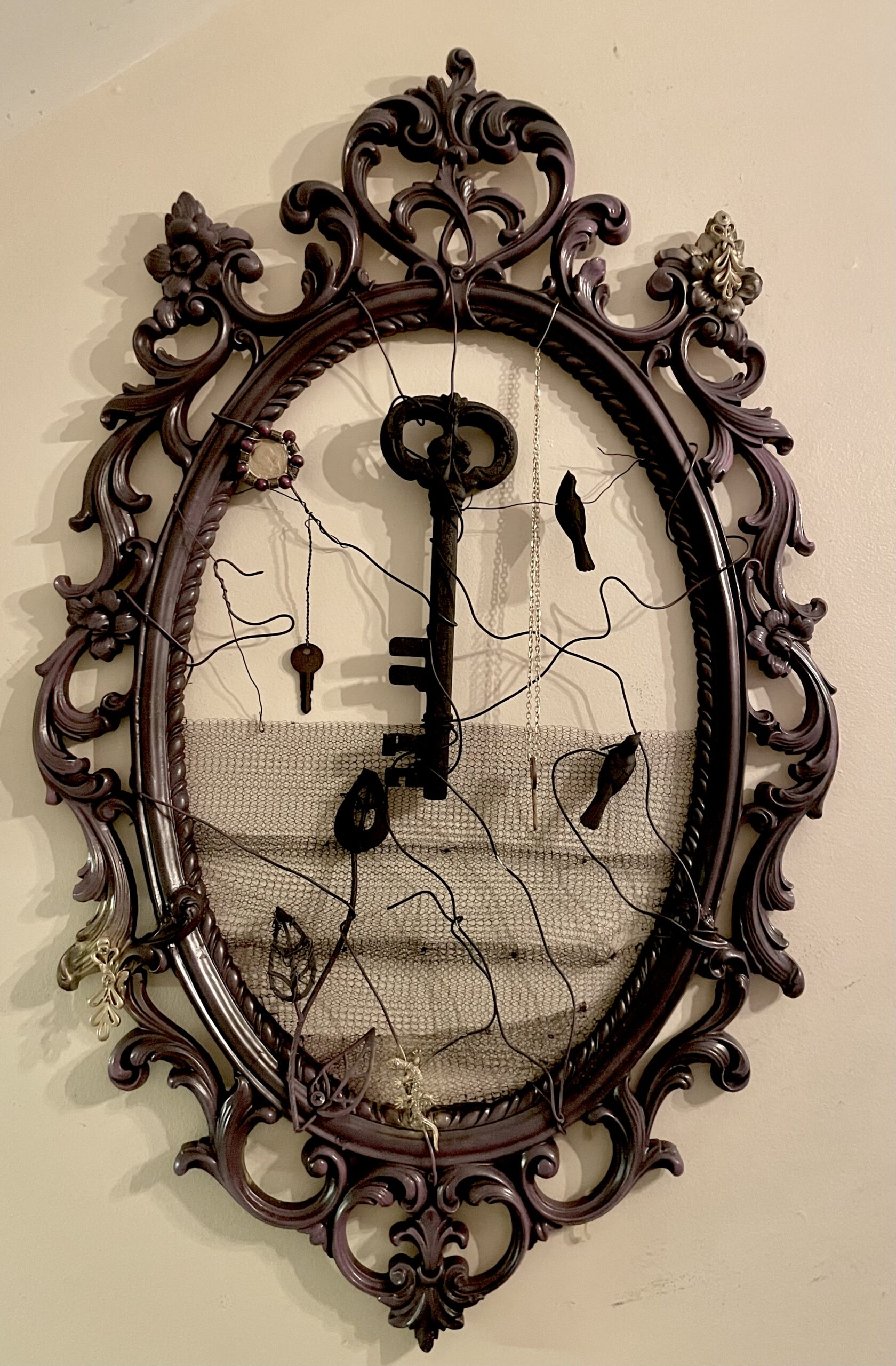 This lovely beauty is not for everyone, it’s mystical, magical and a little scary! At 26” x 24” this unique creation is bold, rustic and certainly a conversation piece.